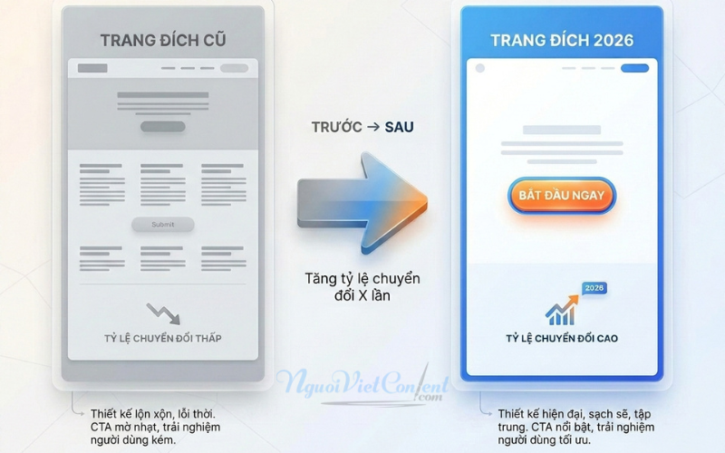 Thiết kế landing page đã trở thành một phần quan trọng trong chiến lược marketing của doanh nghiệp hiện nay. Landing page không chỉ đơn thuần là một trang web đẹp mắt mà còn đóng vai trò quyết định trong việc chuyển đổi khách hàng tiềm năng thành khách hàng thực sự. Bài viết này Người Viết Content sẽ giúp bạn hiểu rõ hơn về cách thiết kế một landing page hiệu quả, từ việc nắm bắt thị trường đến việc áp dụng các xu hướng thiết kế mới nhất trong năm 2026.